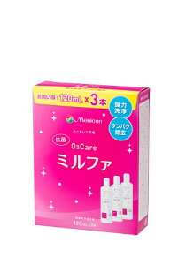 リニューアルに伴いパッケージ・内容等予告なく変更する場合がございます。予めご了承ください。 名 称 メニコン 抗菌O2ケアミルファ 内容量 120ml×3本 特 徴 ◆酸素透過性ハードコンタクトレンズ用 酵素洗浄保存液 ◆優れた洗浄力と