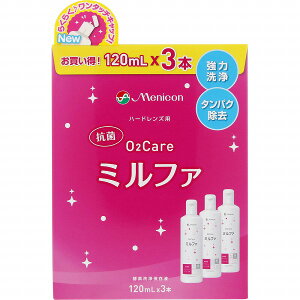 商品概要 メーカー:メニコン 商品名:抗菌O2ケアミルファ3本パック(120mL×3本入) 区分:日用雑貨 内容量:120mL×3本 商品概要:酸素透過性ハードコンタクト...