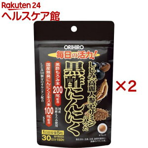 リニューアルに伴いパッケージ・内容等予告なく変更する場合がございます。予めご了承ください。 名 称 《セット販売》 オリヒロ しじみ高麗人参セサミンの入った黒酢にんにく 内容量 150粒(1粒370mg)×2個 特 徴 ◆黒酢とにんにくとい