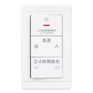 住宅や事務所での24時間換気を保持する専用コントロールスイッチです。 ●DCブラシレスモーター搭載換気扇専用 ●24時間換気扇用 ●スイッチカバー付で換気運転保持が容易に 主な機能・仕様 ・運転表示ランプ付<b