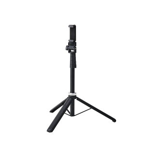 高耐荷重スマホ三脚/自撮り棒 ブラック■脚を収納すると自撮り棒としても使用できる2Wayタイプのスマホ三脚です。■一眼レフカメラなど重い機器も安心して取り付け可能。1/4インチネジを採用し、さまざまなアクセサリーが使用できます。