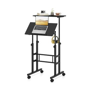 【送料無料】昇降デスク 移動式 2段構造 無段階高さ調節 耐荷重60kg スタンディングデスク 幅60cm フック付き キャスー付き ロック機能 在宅ワーク 介護用 サイドテーブル 勉強机 仕事デスク パソコンデスク...