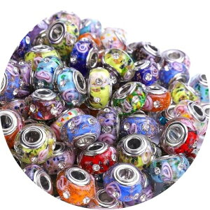 AIPRIDY 50 Pcs 15 x 11 mm Murano大穴銀黄銅芯ガラスビーズヨーロッパジュエリービーズ (日本手描き) サイズとパッケージ:50個の大きな穴ビーズ;直径:約15mm;厚さ:11mm、穴:5mm。 素材:ガラ...