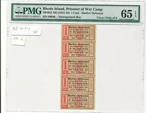 USA WWII POW Camp Chits RI-4-1-1 Harbor Defense, RI 1 Cent PMG 65 Strip of 5商品について製造国/地域 米国PMG認証グレード65軍用通貨の種類額面1c注意事項...