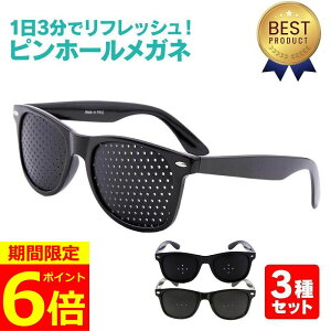 パソコン・スマホ後の疲れ目におすすめのピンホール眼鏡。小さな穴がたくさんあいているので、かけたままでも視界良好です。視力回復に!ピンホールメガネ (3種類セット)全面穴、5穴、3穴の3モデルセットとなっております...