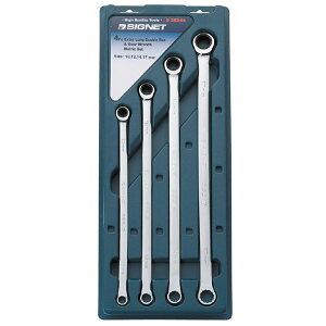 メーカー名:SIGNET(シグネット) 品番:33670 商品名:4PC 75゜ メガネレンチセット ●メガネ部オフセット角(°):75 ●材質:クロームバナジウム鋼