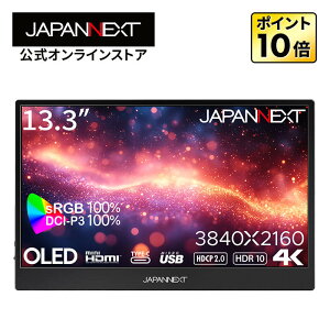 13.3インチの有機EL(OLED)パネルを搭載した、4K(3840x2160)解像度のモバイルモニターです。有機EL(OLED)パネルは従来のディスプレイと比較して、より自然な色彩(sRGB:100%、DCI-P3:100%)や10...
