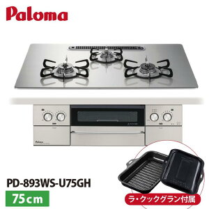 ※状況により別途費用がかかる場合がございます パロマ[Paloma]ビルトインコンロ PD-893WS-U75GH/LPG プロパンガス FACEIS GRAND 75cm 水なし両面焼き トッププレート素材:ガラストップ...