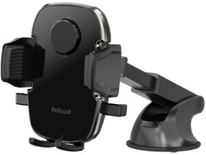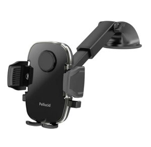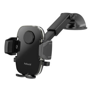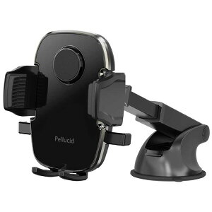ダッシュボード強力吸盤取付 片手ワンタッチ開閉スマホホルダー 手帳型ケース 縦横置き対応 ロングアーム PPH2108スマホを押し