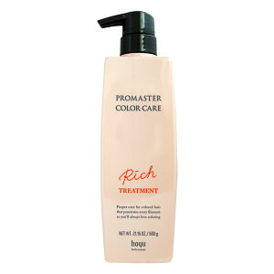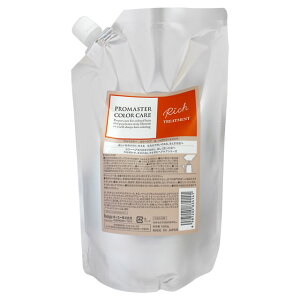 商品名ホーユー プロマスター カラーケア リッチ トリートメント 1000g レフィル内容量1000g商品説明カラーによる髪の水分保持力低下を補修するトリートメントです★毛髪表面に吸着するヒアルロン酸配合で、毛髪の水分量を向上させ潤いのあ