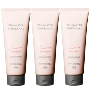 商品名ホーユー プロマスターカラーケアスウィーティアトリートメント内容量200g特徴なめらかで柔らかな髪へ カラーによって耐性が低下する 熱ダメージした髪を補修 ドライヤーやアイロンによる熱ダメージを受けた毛髪に作用するアミノ