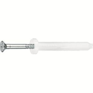 [特長] ●ハンマーで打つだけの簡単施工です。 ●ドライバー1本で取り外しも自在です。 ●安定した保持力を発揮します。 [仕様] ●長さ(mm):50 ●外径(mm):5 ●下穴径(mm)コンクリート:5 ●