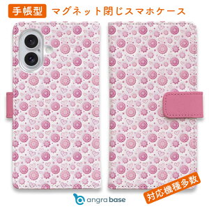 エンボス加工のようなピンク模様。中にはハートも入ってかわいい仕上がりに。素材高級人工革(外側)にUV印刷を施し、内側ではクリアケースでスマートフォンをしっかりと保護します。