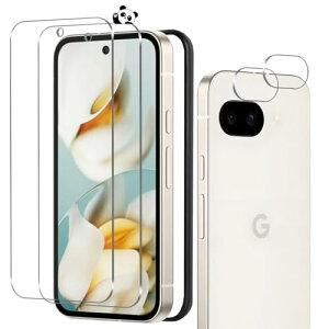 Google Pixel 9A 保護フィルム 2枚+ カメラ保護 2枚+ガイド枠付き 表面硬度9H グーグルピクセル9A フィルム ワンタッチ貼付け 気泡ゼロ 衝撃 Google Pixel 9A用の ガラスフィルム...