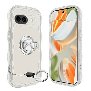 Google Pixel 9A ケース クリア ウェーブ リング付き グーグル TPU波状のバンパー 透明 可愛い 韓国 女性用 薄型 人気 おしゃれ 耐衝撃 ストラップホール付きブランド色モデルGoogle...