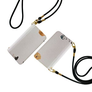 商品特徴・ショルダー付き手帳型スマホケース・シームレスな全面デザイン(内側は落ち着いたオフホワイト)・外側は高品質の人工革を使用・内側にはスマホを装着するケースが付属・機種専用のカメラホール仕様でケースを装着したまま
