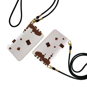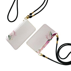 商品特徴・ショルダー付き手帳型スマホケース・シームレスな全面デザイン(内側は落ち着いたオフホワイト)・外側は高品質の人工革を使用・内側にはスマホを装着するケースが付属・機種専用のカメラホール仕様でケースを装着したまま
