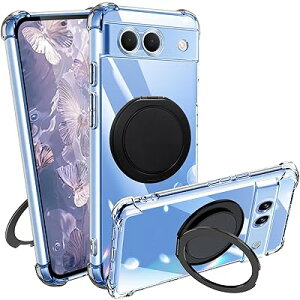 Google Pixel 8A 用 ケース MagSafe対応 リング 360°回転スタンド機能 縦横両対応 透明 黄ばみ防止 ワイヤレス充電 レンズ保護 耐衝撃 携帯カバー グーグルピクセル8A カバー...