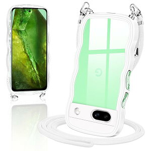 Google pixel 8a ケース ショルダー クリア TPU ピクセル 8a スマホケース カバー 創意 個性 肩掛け 首掛け 斜めかけケース 可愛い かわいい 韓国 透明 耐衝撃(ホワイト)ブ...