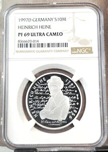 1997 GERMANY SILVER 10 MARK POET HEINRICH HEINE NGC PF 69 ULTRA CAMEO SCARCE GEM商品について額面 10マルク流通/非流通 非流通時代 西側諸国および統一諸...