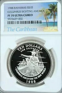1988 BAHAMAS SILVER 10 DOLLARS SIGHTING AMERICA NGC PF 70 ULTRA CAMEO SCARCE商品について構成シルバー認証番号 5925429-002NGC認証額面 10 ドル...