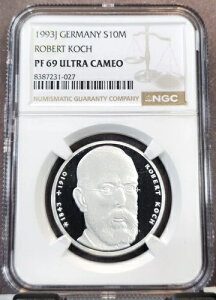 1993 GERMANY SILVER 10 MARK ROBERT KOCH NGC PF 69 ULTRA CAMEO SCARCE GEM PROOF商品について額面:10マルク流通/未流通:未流通時代:西側諸国および統一諸国(...