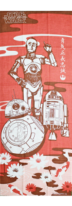 仲良しR2D2とC3POにBB-8が加わって、なんだか楽しそうな3人です。 捺染という染め方で、職人によって1枚1枚手染めされています。 捺染とは柄を色別に分版したスクリーンを用いて、染料に糊剤を添加...