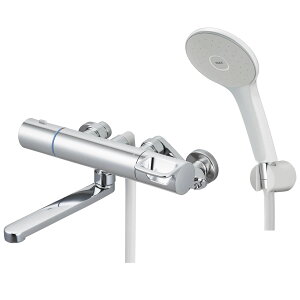 設定温度に自動で調整される浴槽・洗い場兼用サーモスタット式シャワーバス水栓 ・大判のシャワーヘッドと空気を含んだ大粒の水滴で浴び心地の良さを向上、さらに節湯性能も両立させたエコアクアシャワータイプ。 ・本体昇温防止機能: