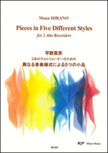 リコーダー曲集【詳細情報】★編成 AA★スコア冊子・・・A4サイズ16ページ 別冊パート譜 (2冊) ※CDは付属しません2本のアルトリコーダーのための異なる音楽様式による5つの小品■作曲者・平野真奈さんについて■ 平野真奈さんは
