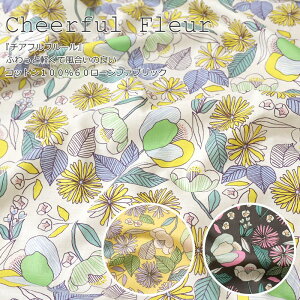 白地に細かな花柄が浮かぶ、目前に広がる花畑をイメージしたデザイン。シルバー・黄・薄紫・黄緑が、かわいらしく調和しています。小物にも洋服にも使いやすい柄です。 ※こちらの生地は模様に光沢のあるデザインです。※ ■素材:コットン10
