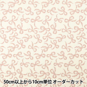 【数量5から】 生地 『細コール リボン オフホワイト×ピンク NRF-16-OWP』 寒くなってきた季節にピッタリ♪ 暖かく品のある質感の細コールに、リボンプリントが大人かわいい秋冬生地です。 シャツやワンピースなどの服地や小物、イ...