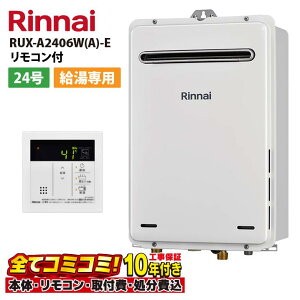 【工事費込セット(本体+基本工事+既設品撤去(リモコン別売))】 リンナイ RUX-A2406W(A)-E 24号 ガス給湯器 給湯専用 屋外壁掛型 既設品撤去費込み リモコン別売