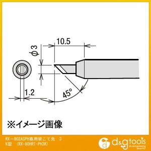 【メーカー】 ●太洋電機産業(株) 【仕様】 ●コテ先名称:R0.3mm●適合コテ:RX-80GASPH●ヒーター一体式 【質量】 ●8.300G