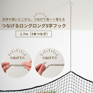 商品名 つなげるロングロングS字フック 1.17m(2本つなぎ) >>1.7m(3本つなぎ)はこちら サイズ 全長:約1170mm フック:約50mm ジョイント:約23mm ポール:約503mm(ねじ部分除く)...