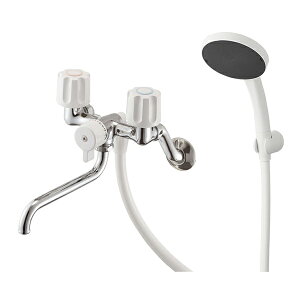 湯・水のハンドルで温度調節をするツーバルブシャワー混合栓。寒冷地仕様。