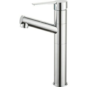 パイプが上向きなのでシンクのスペースが広々使えます。オールメッキで高級感のあるデザインのシングルレバー混合栓。操作しやすいリングレバーハンドル。...