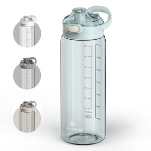 SANTECO 水筒 1000ML 直飲み ボトル 1リットル 米国Tritan BPAフリー 超軽量 携帯便利 おしゃれ 洗いやすい キャリーハンドル付き おしゃれ スポーツ【ボタンロック】ボタンロックが付いており...