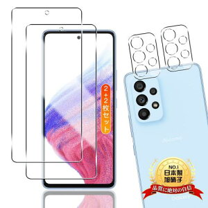 Galaxy A53 5G ガラスフィルム (2枚) +カメラフィルム (2枚) SC-53C / SCG15 フイルム 強化ガラス 液晶 保護フィルム ワンタッチ貼付け 気泡ゼロ ケースと干渉せず 硬度9H...