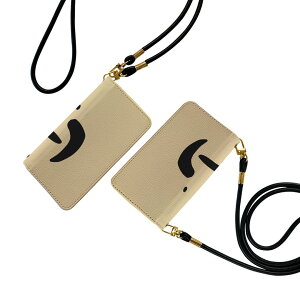 商品特徴・ショルダー付き手帳型スマホケース・シームレスな全面デザイン(内側は落ち着いたオフホワイト)・外側は高品質の人工革を使用・内側にはスマホを装着するケースが付属・機種専用のカメラホール仕様でケースを装着したまま