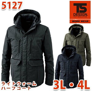 TS-DESIGN ライトウォームハーフコート 5127 撥水加工を施した綿100%の防寒ハーフコート。 動きやすい丈感と、手を入れると温かく収納力のあるハンドウォームポケットなど、機能美もあわせ持つデザイン。 高級感漂う重厚な綿の風合い