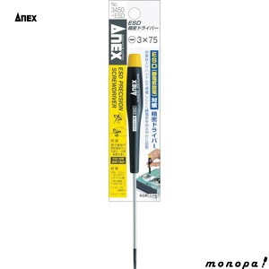 商品情報 メーカー名 ANEX(アネックス) 品番 AN-3450-ESD-3-75 商品説明 【特徴】 PCや電子機器その他精密機器の内部回路の破壊、誤作動を防止するESD対策ドライバー 炭素入りハンドルで帯電しにくく、静電気を緩や...