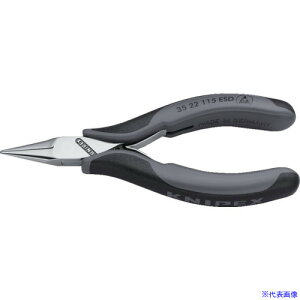 KNIPEXクニペックス 品番3512-115ESD ●ヘッド仕上げ:鏡面仕上げ ●ハンドル仕様:ESD ●スタイル:平型 ●長さ(mm):115 ●口先の長さ(mm):22.5 ●ジョイント部の幅(mm):9.5<