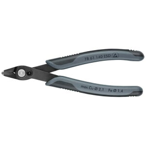 クニペックス KNIPEX エレクトロニクス スーパーニッパー 140mm 7861-140ESD 刃先(mm):12.3切断能力(mm)硬線:[ファイ]1.2切断能力(mm)中硬線:[ファイ]1.4 切断能力(mm)軟線:[ファイ]...