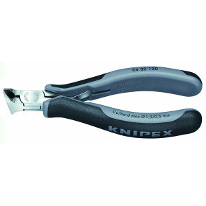 クニペックス エレクトロニクスエンドカッティングニッパー・長さ(mm):120・口先の長さ(mm):10・ジョイント部の巾(mm):11・ジョイント部の厚さ(mm):7.2・口先先端の巾(mm):17・切断能力(軟線;φmm):1.5...