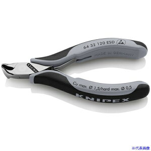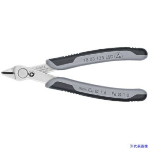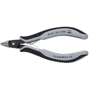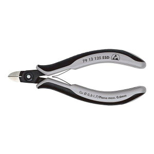 KNIPEXクニペックス 品番7912-125ESD ●ヘッド仕上げ:磨き ●ハンドル仕様:ESD ●スタイル:ラウンドヘッド、切断面は非常に小さな傘状 ●切断能力(軟線;φmm):0.3-1.7 ●切断能力(中硬線;φm