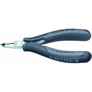 クニペックス エレクトロニクスエンドカッティングニッパー・長さ(mm):120・口先の長さ(mm):18.5・ジョイント部の巾(mm):9.5・ジョイント部の厚さ(mm):6・刃幅(mm):5・切断能力(軟線;φmm):0.6プライヤ...