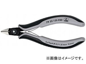 KNIPEXクニペックス 品番7932-125ESD ●ヘッド仕上げ:磨き ●ハンドル仕様:ESD ●スタイル:テーパーヘッド、切断面は非常に小さな傘状 ●切断能力(軟線;φmm):0.2-1.5 ●切断能力(中硬線;φm