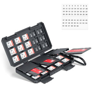 [主な特徴] ・独立したカードスロットの設計により、メモリーカードを分けて収納するだけでなく、カードの接触や傷を防ぎ、簡単にカードを取り出せます。 ・Micro SD 12枚 / SD 4枚 / SIMカード2枚 の計18枚が収納でき...