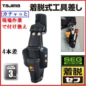 【タジマ】【着脱式工具差し】 着脱式工具差し 4本差し SFKSN-P4(4本差し) 【機能】 ・腰周りの組み換えが簡単な着脱式。 ・セフ後付ホルダー用スライドストッパー付。 ・横幅を極力抑えた省スペース設計...