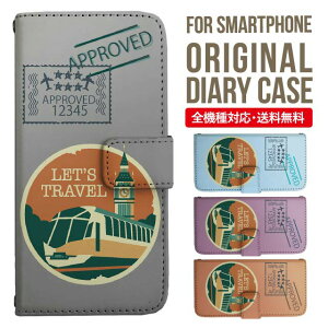 デザイントラベル柄 / メッセージ機能・両面カバーで、スマートフォンの液晶も本体もしっかり両面保護・ポケットの中やバッグの中での誤操作を防止・ベルト部分はマグネット式でスムーズな開閉・装着したままカメラ機能が使えます・装